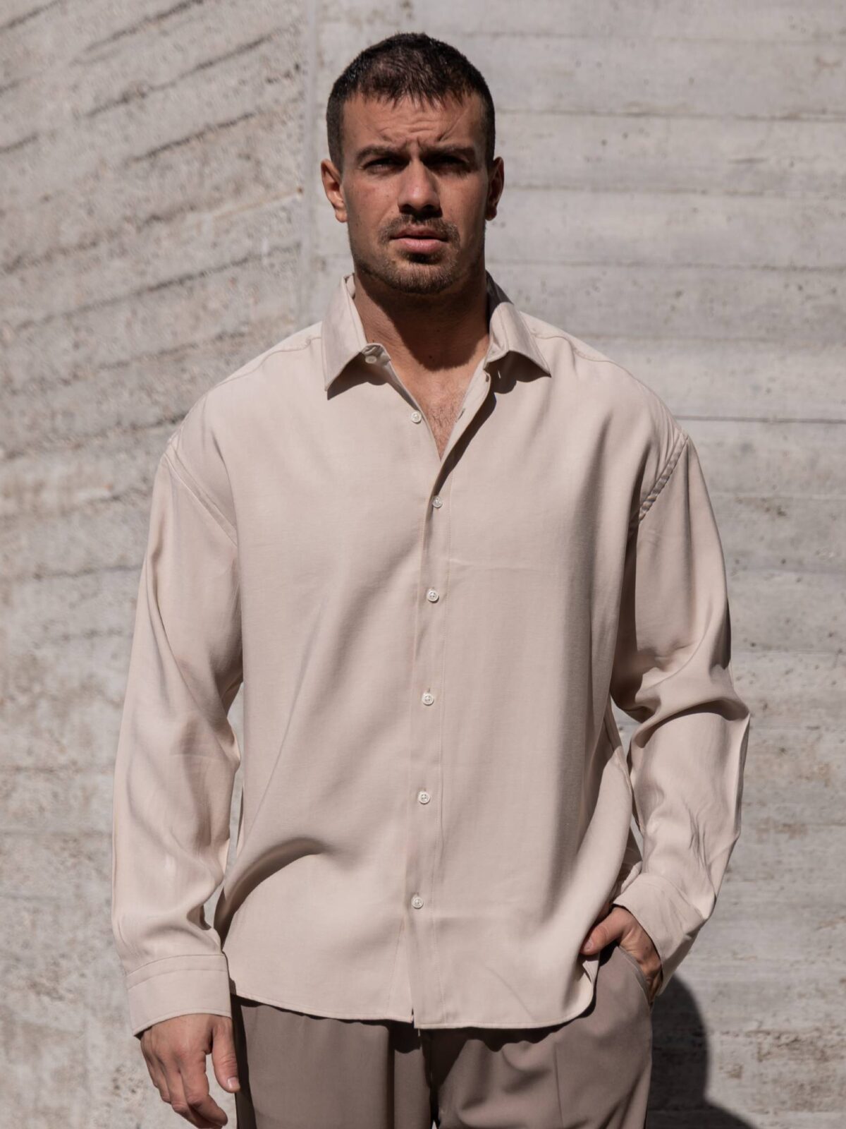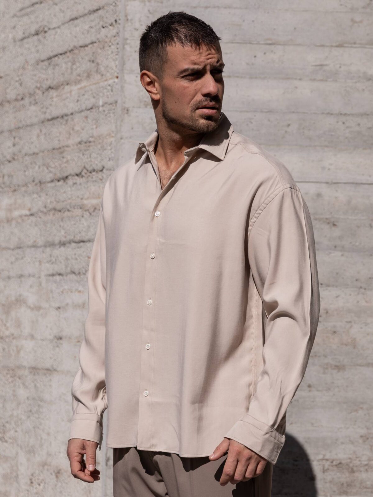 Πουκάμισο μπεζ σε oversized γραμμή