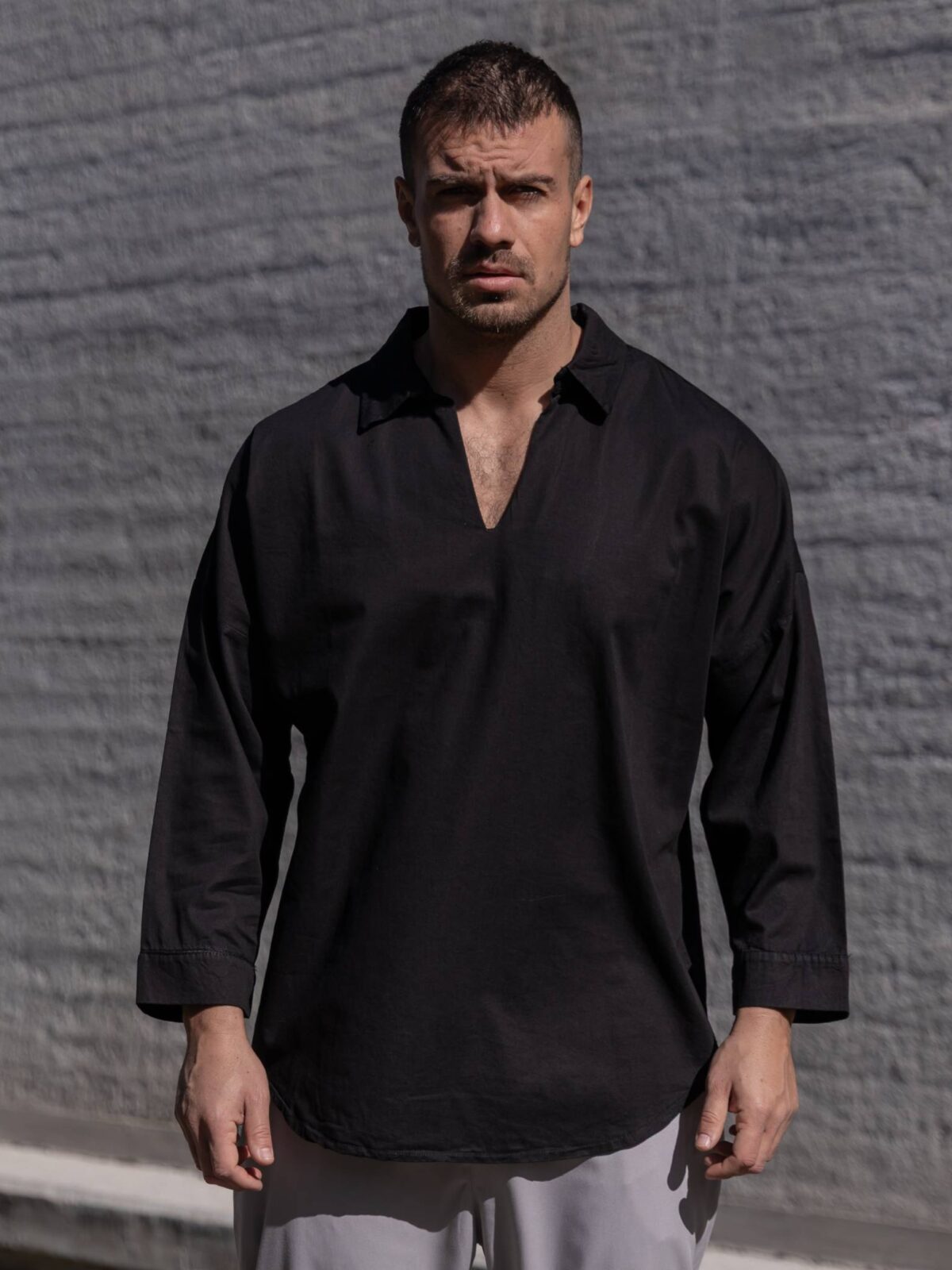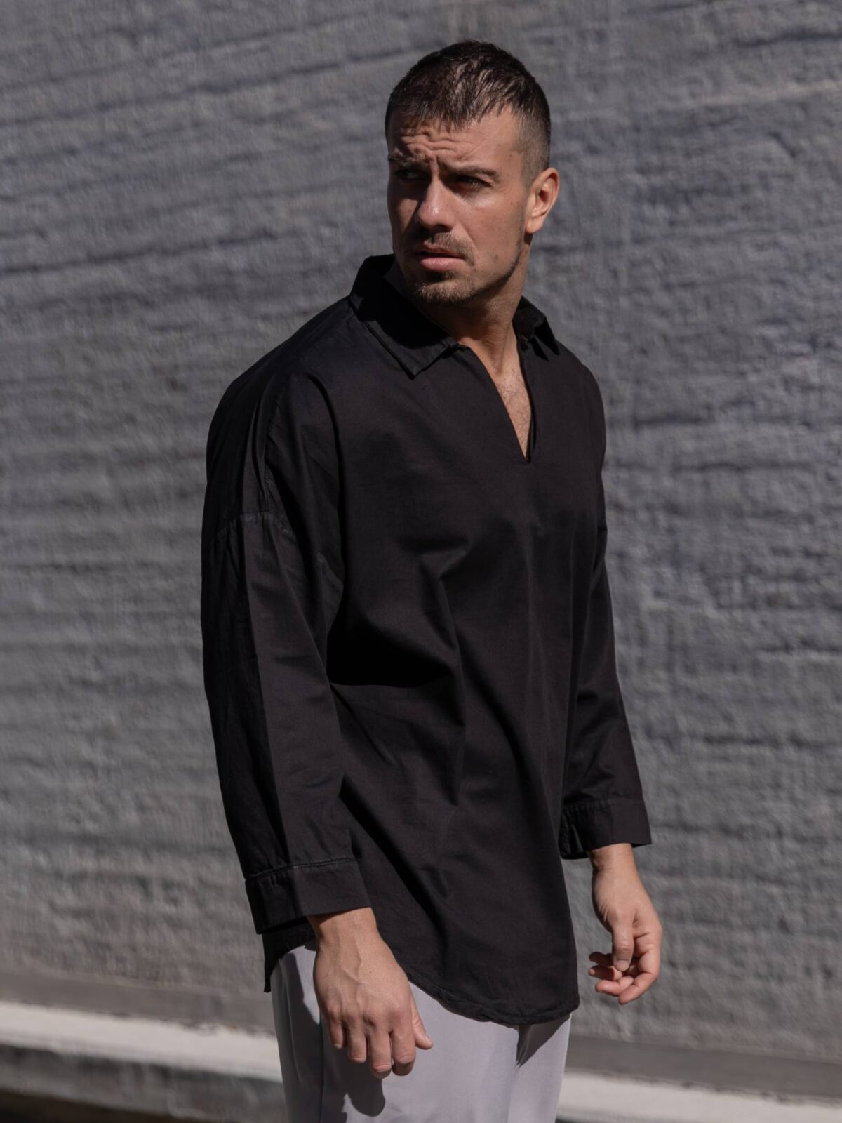 Πουκάμισο μαύρο με 3/4 μανίκι σε oversized γραμμή