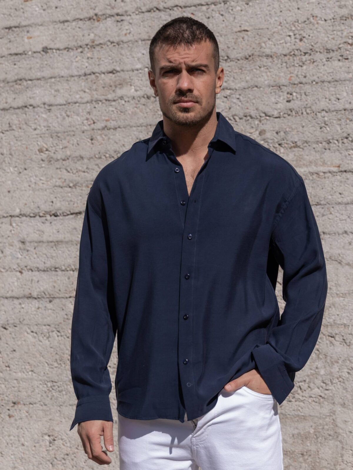 Πουκάμισο μπλε σε oversized γραμμή