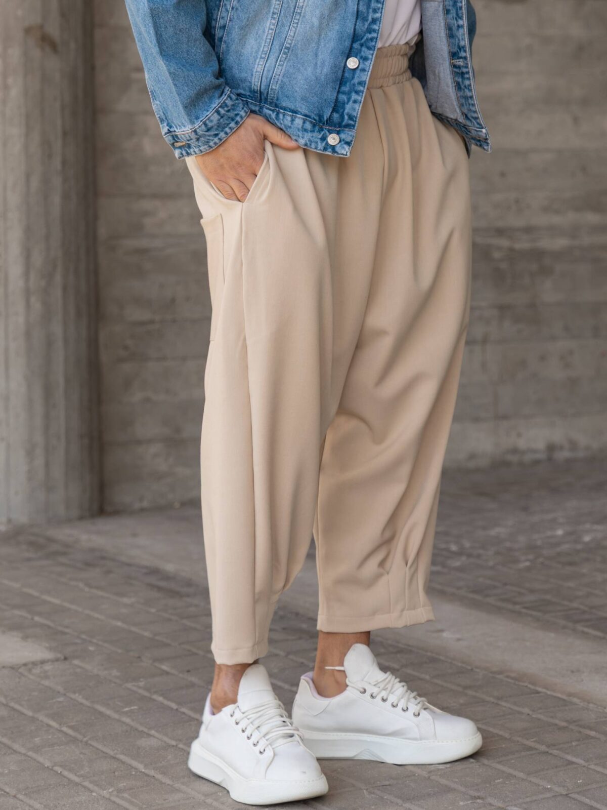 Παντελόνι μπεζ japaneese σε oversized γραμμή